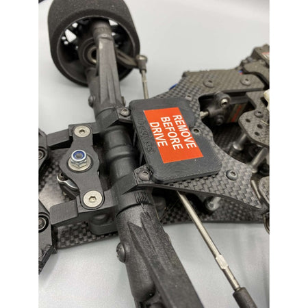 Le "bloque sauve servo" vous sera très utile (pour ne pas dire indispensable) pour régler l'ouverture du train avant. Inutile d'allumer la télécommande pour mettre la direction au neutre. Cet outils le fait à votre place et vous garantit d'avoir le sauve servo parfaitement au neutre. Le réglage est encore plus précis et symétrique.