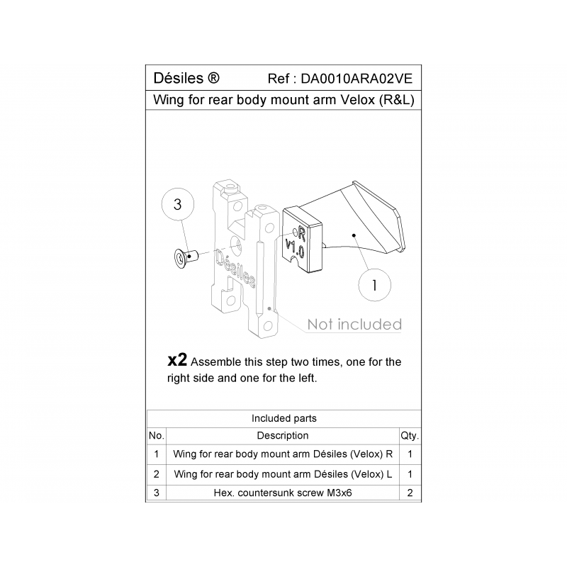 Aileron de bras de support de carrosserie arrière long Velox V8 et V8.2 Désile Aero